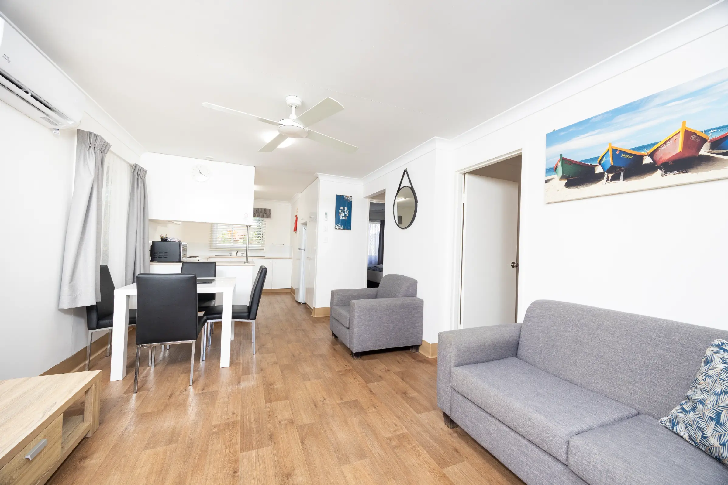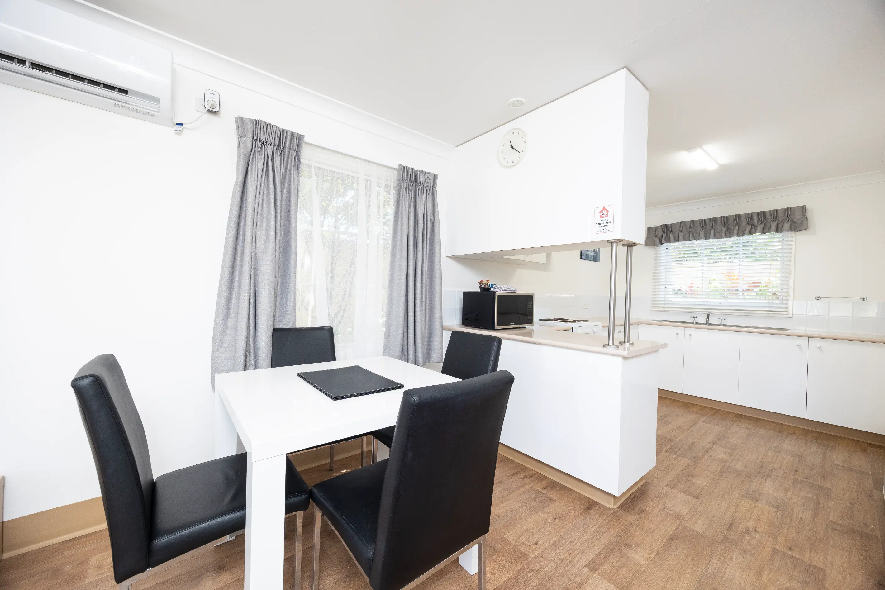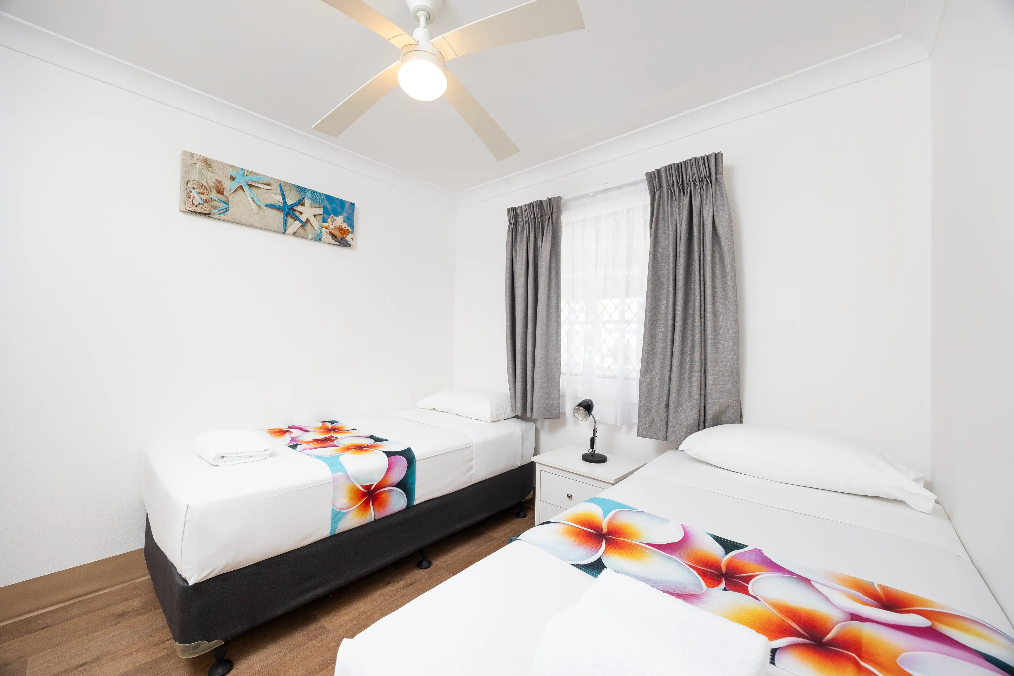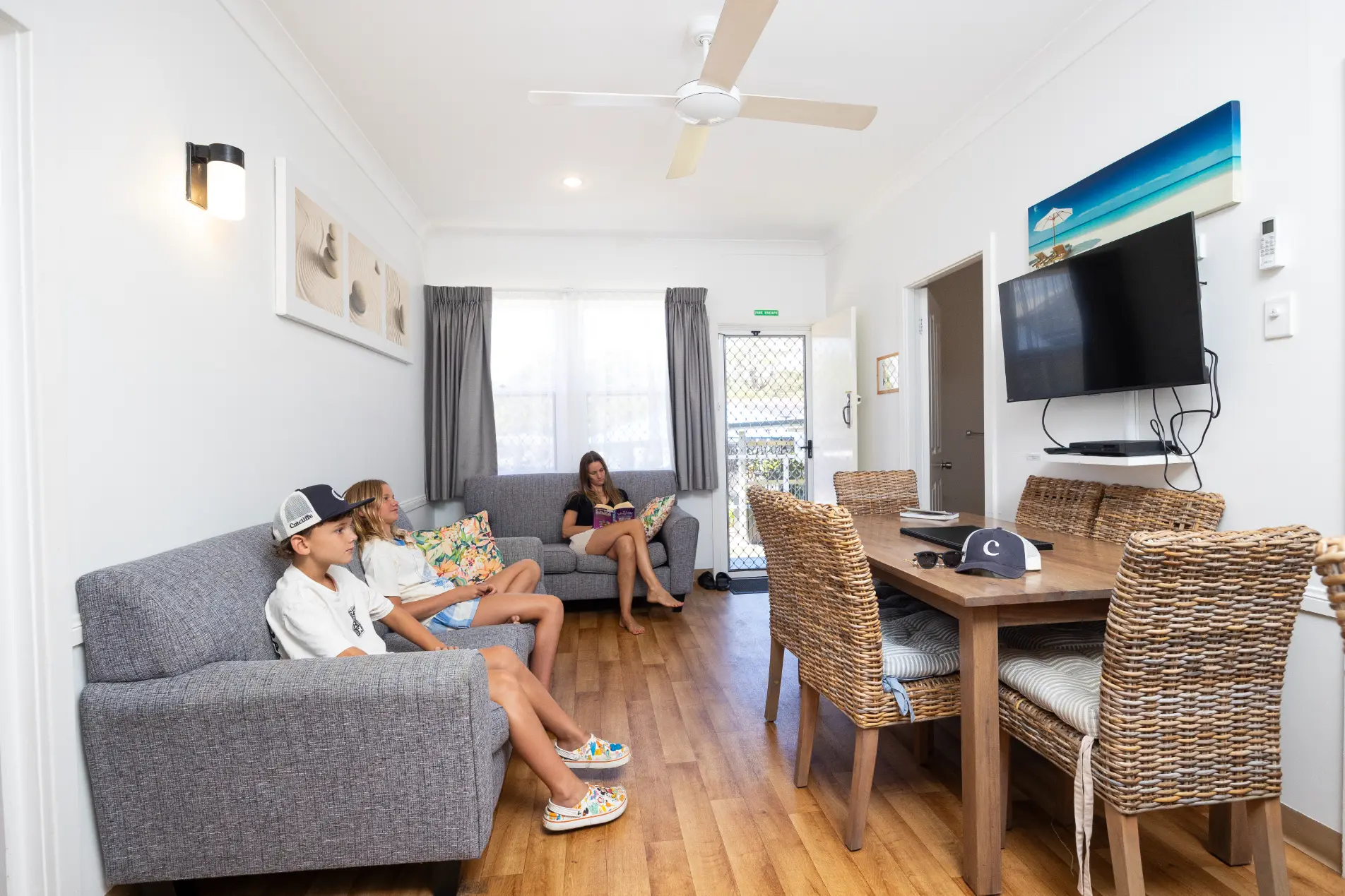 Our fully self-contained three-bedroom cottages are surrounded by manicured gardens and just a few steps from the heated pool, children’s playground, half-court tennis court and BBQ areas.